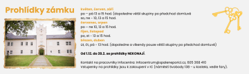 Zámek Vám může nabídnout ubytování až pro 66 osob, zázemí pro školní výlety, firemní teambuilding či výjezdní seminář, procházku v zámecké zahradě nebo i romantický svatební obřad ve stínu jejích stromů. Pro sportovce je to také ideální startovací místo pro podnikání cyklovýletů do nedávno zrušeného újezdu Brdy.
